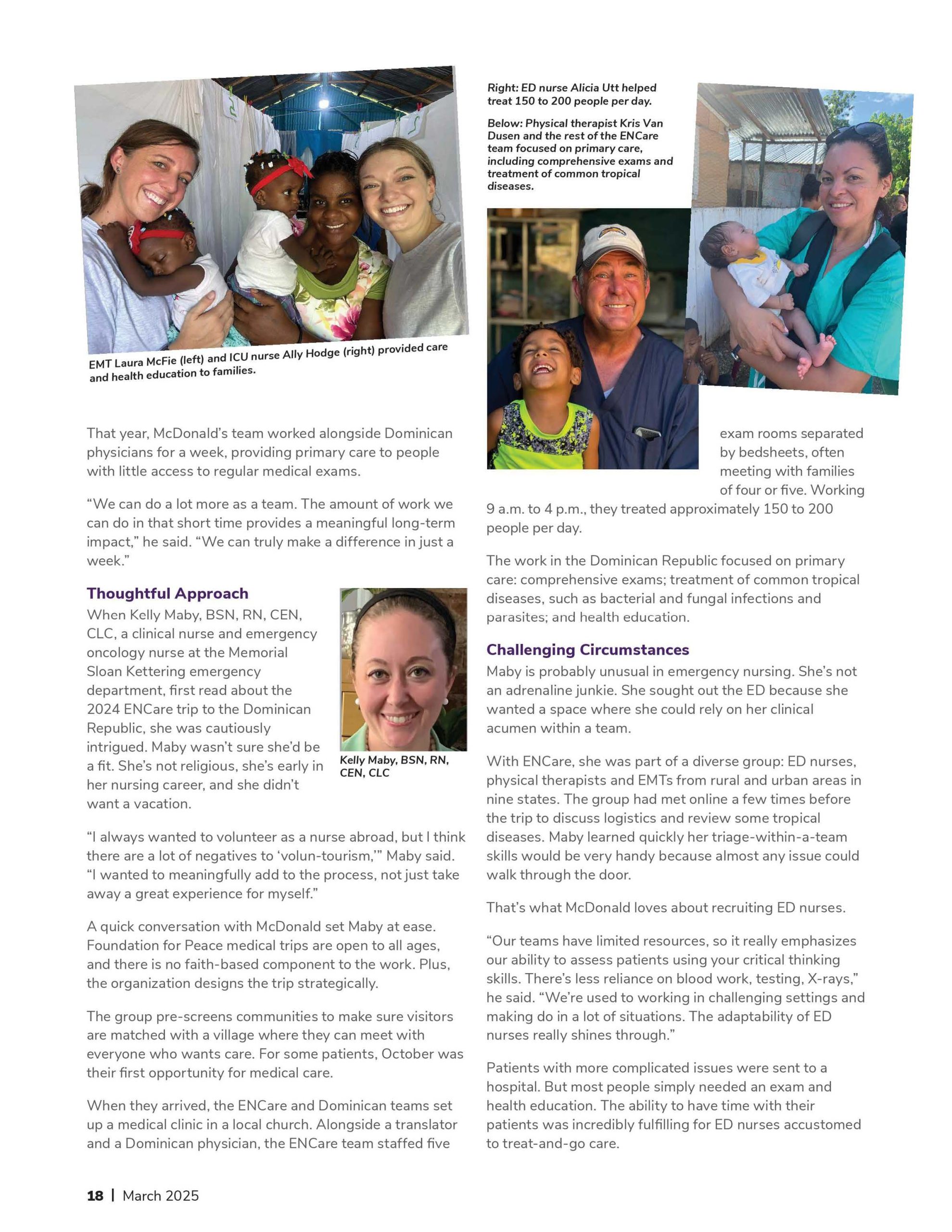 David McDonald has been attending FFP mission trips for more than 10 years and has led his own team of nurses since 2023. This partnership has led to some remarkable stories. Please see this article reprinted with permission from the ENA Connections newsletter.